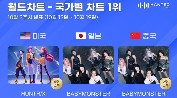 (Korea) 헌트릭스·베이비몬스터, 10월 3주차 한터 국가별 차트 정상